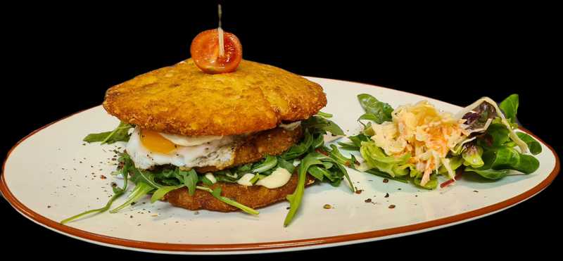 Abgerundet mit hausgemachter Sauce im knusprigen Mehrkornbun